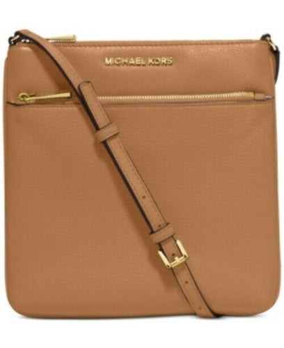 MICHAEL KORS Acorn Brown Small Flat Crossbody Leather Double Zip
