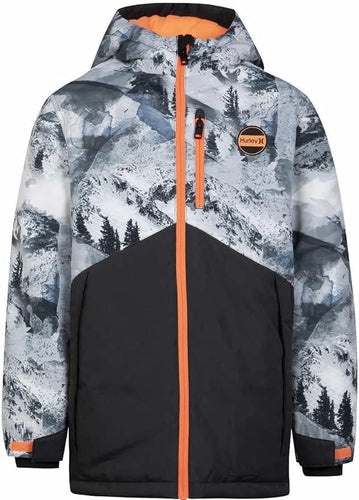 Hurley Boy's Youth Winter Hooded Snowboard Jacket, Gray/Black XS 5/6