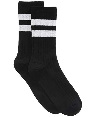 Hue Women's Ribbed Metallic-Stripe Socks (Black, One Size)