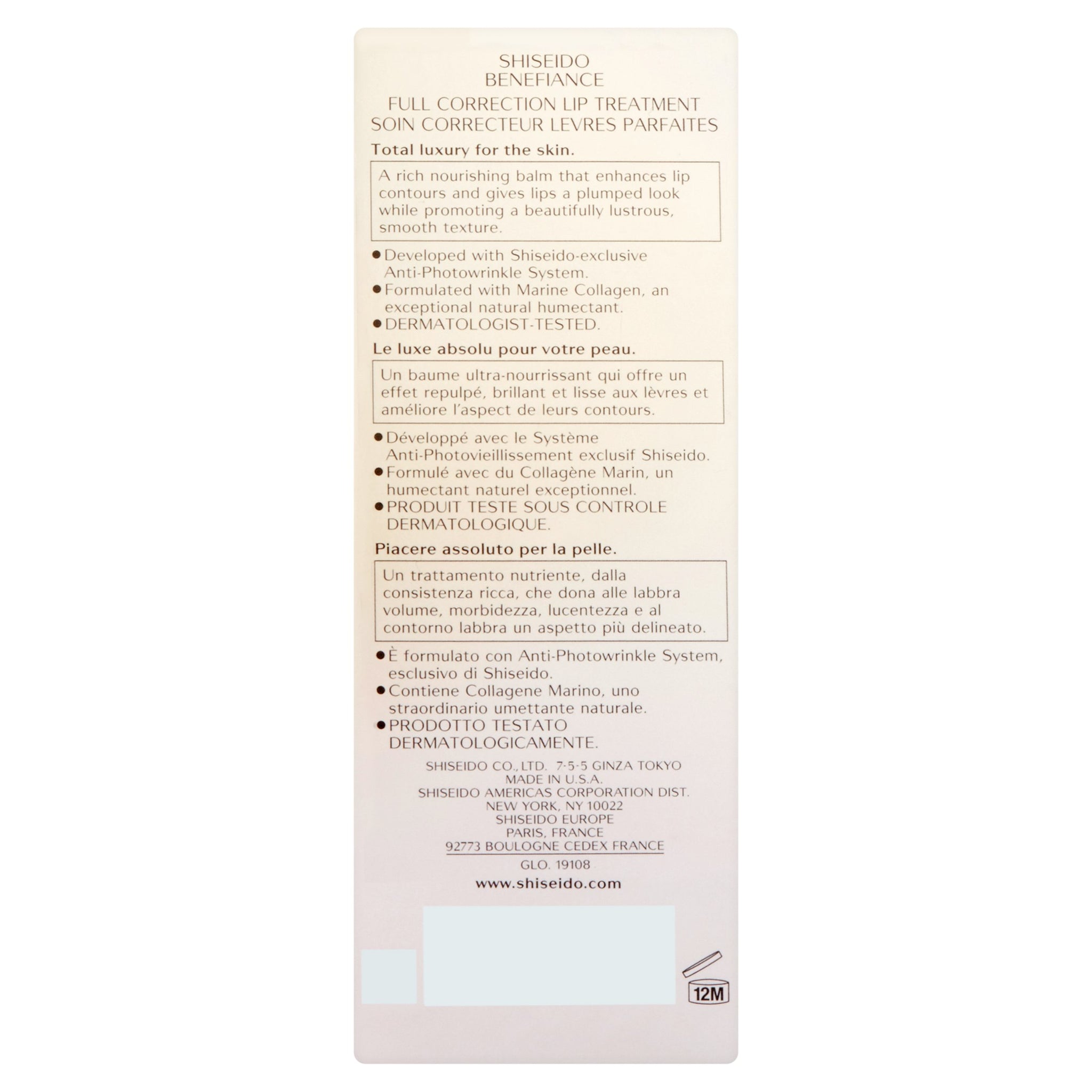 Shiseido Benefiance Full Correction Lip Treatment, 0.5 oz, new in box.