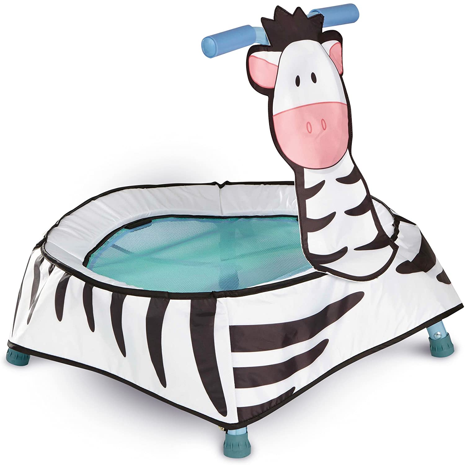 The Boing Boing Trampoline is tons of fun and a terrific way to stay healthy. Kids will delight in jumping along to the silly sounds made by this product. This mini jumping trampoline for toddlers is ideal for keeping your little one active indoors. It features a cute and cartoonish zebra design with safety padding and an easy grip handle. Jumping helps build strength and improve balance and coordination in young children. You will love seeing your child bounce off the unlimited energy created by this Boing Boing Trampoline. Place it in your living room, den, your child's bedroom and more for quick and convenient access to hours of fun.