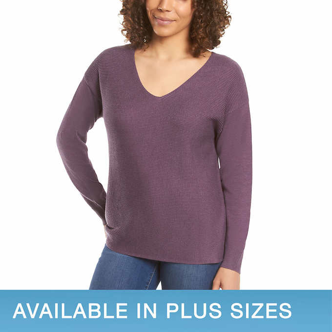 Ella Moss Womens Sweater V-Neck Long Sleeves Ribbed Soft. New with tags.