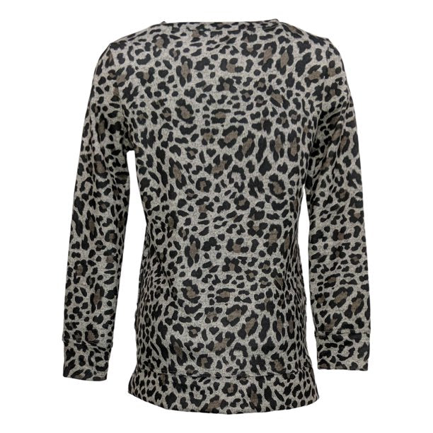 Ellen Tracy Womens Cozy V-neck Black Brown Animal Print Long Sleeve Medium. New with tags.