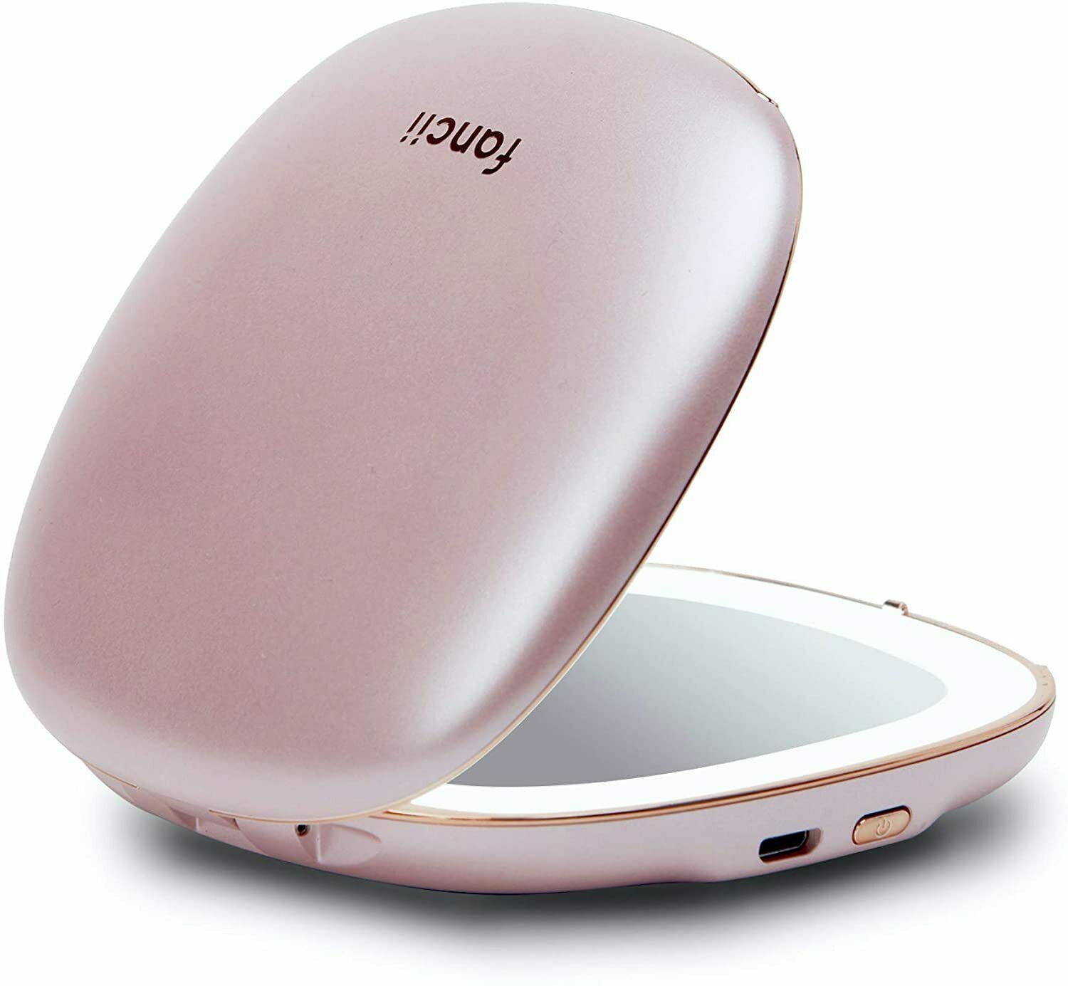 Brand new in box Fancii Compact Makeup Mirror with Natural LED Lights, 1x/ 10x Magnifying - Rechargeable, Portable, Lighted 4” Hand Mirror for Travel and Purses (Mila) (Rose Gold). New in Box