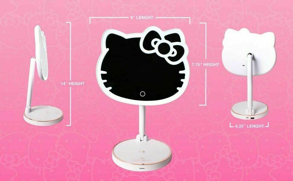 Get ready with the cutest mirror, the Hello Kitty LED Rechargeable Mirror! This mirror is the centerpiece of the Impressions Vanity for Hello Kitty Mirror set. The mirror is shaped after Hello Kitty and outlined with an ultra-bright LED strip light. To power up the mirror, simply tap the circle touch sensor on the mirror. To adjust the brightness, press and hold the touch sensor to your perfect lighting.