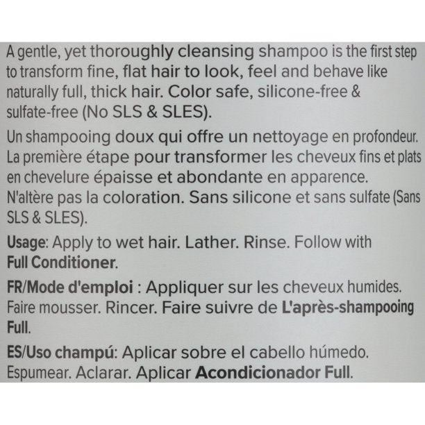 This full shampoo deeply cleanses fine, thin hair, removing all traces of dirt, oil, and product build up. It is formulated without damaging sulfates, full shampoo properly cares for and prepares lifeless, limp hair for optimal styling.