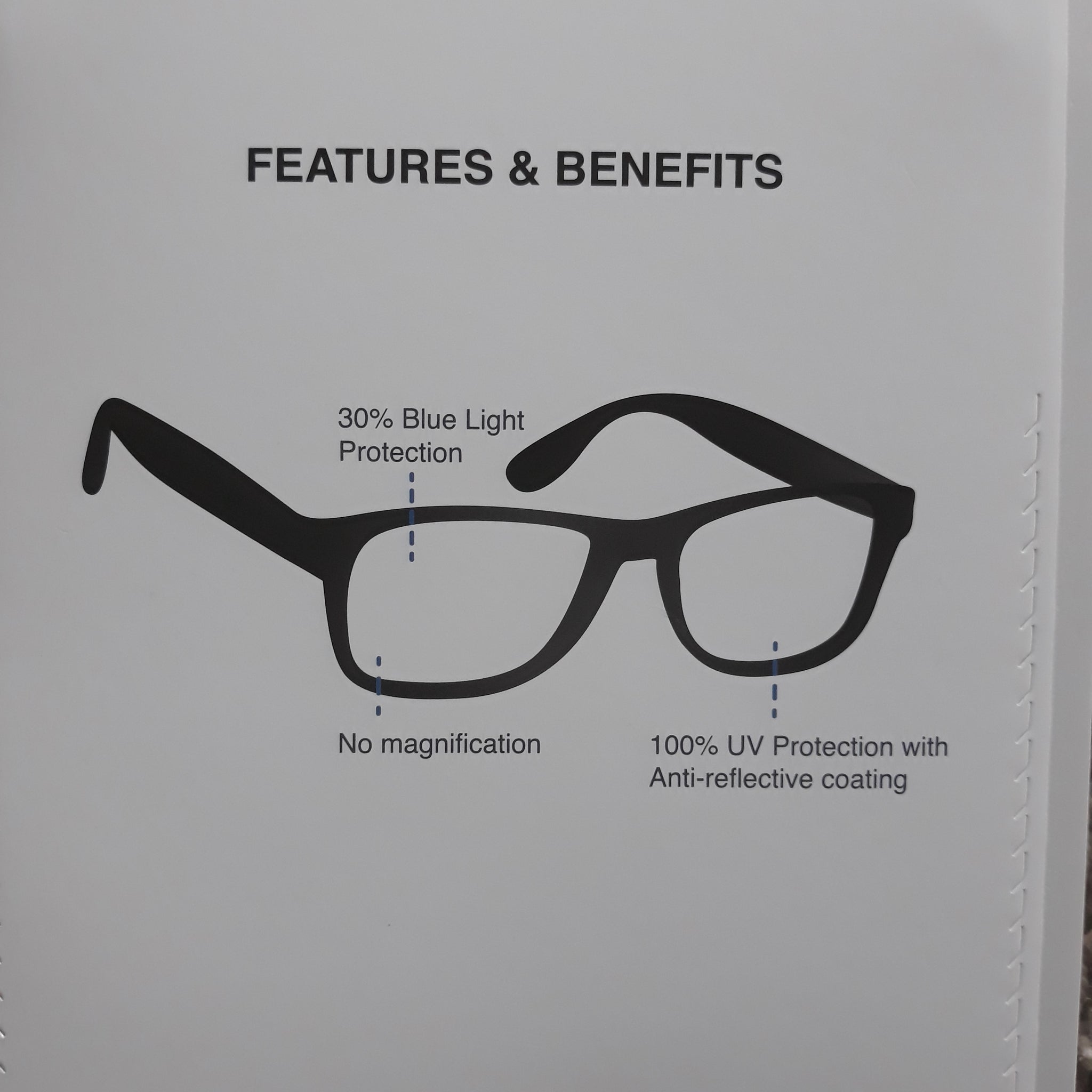 - Blue light filtering lens to enhance visual acuity and comfort while reducing eye strain from electronic devices such as computers and phones.
