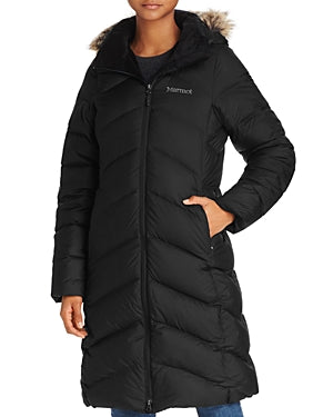 - The down filled hood features a removable fur.