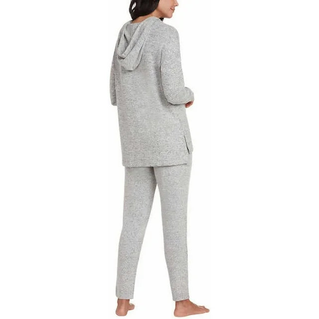 Ladies 2 Piece PJ Lounge Set Includes 1 Tunic Length Pullover Hoodie Top with Hi-Low Hem and an Adjustable Drawstring Hood and 1 Pant with Elastic Waistband and Functional Drawstring and 2 Hand Pockets