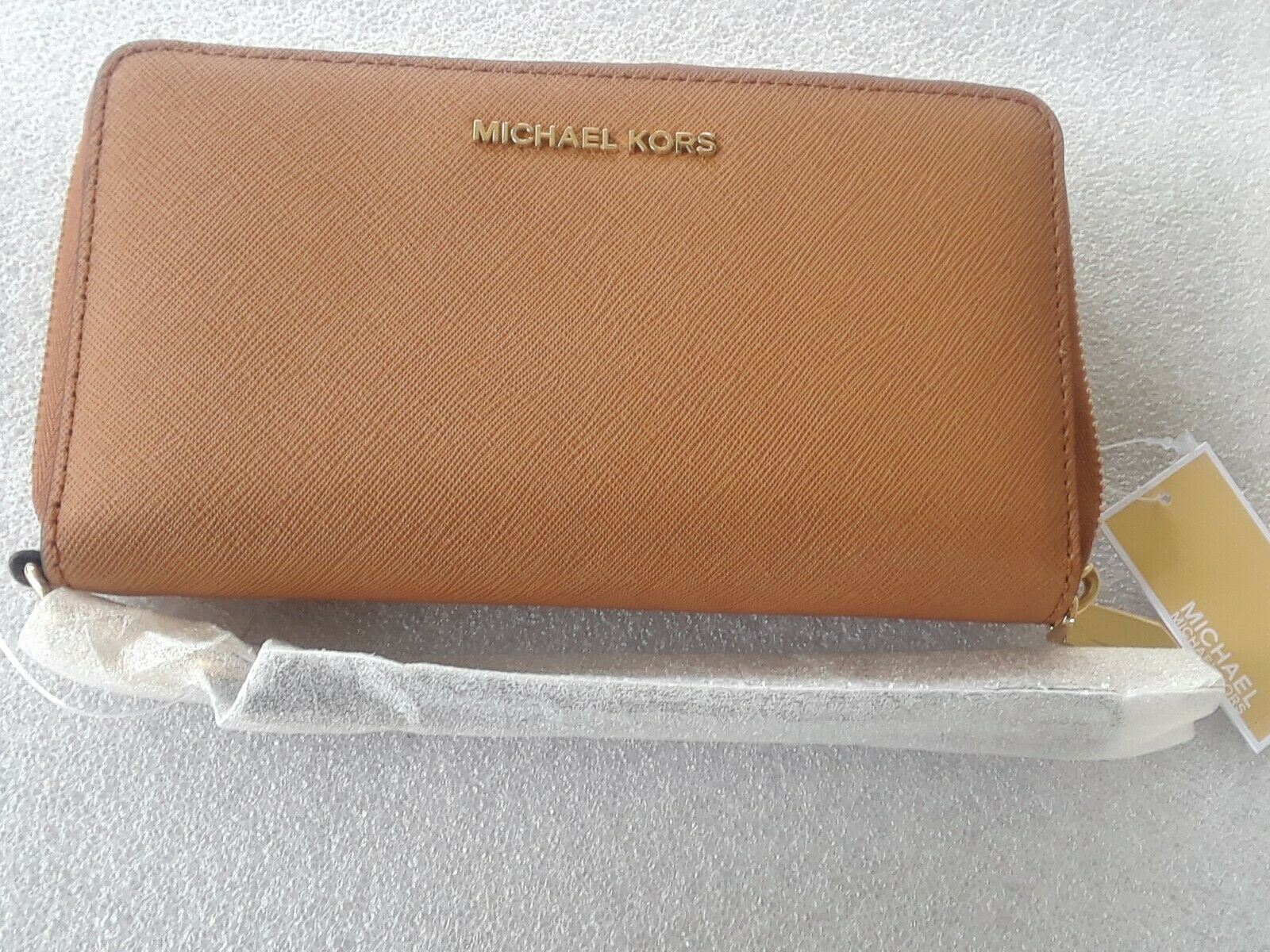 Michael Kors Jet Set Travel Large Smartphone Wristlet - Acorn Brown - NWT - Auth