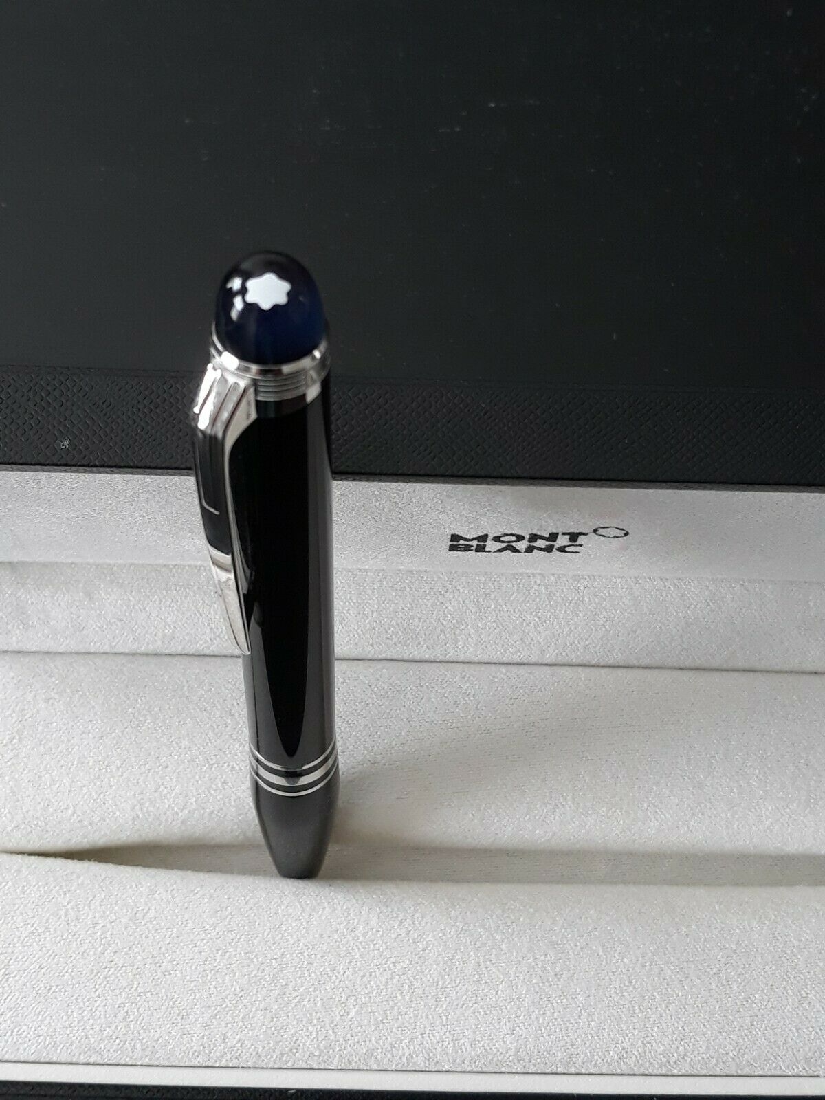 * Floating Montblanc emblem in a blue translucent dome top