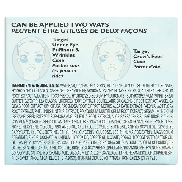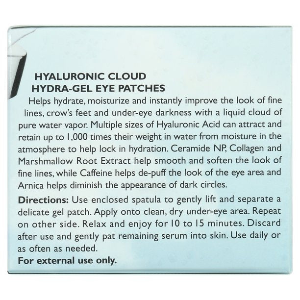 Eye contour gel patches that hydrate with multiple sizes of Hyaluronic Acid and instantly help improve the look of fine lines and under-eye darkness. Contains multiple sizes of Hyaluronic Acid, a potent hydrator that draws in water. Ceramide NP, Collagen and Marshmallow Root Extract help smooth and soften the look of fine lines, while Caffeine helps de-puff the look of the eye area and Arnica helps diminish the appearance of dark circles.