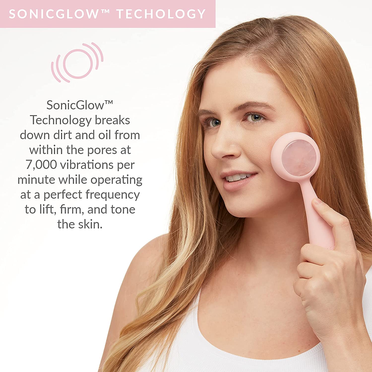 - SonicGlow Technology™- With 7,000 vibrations per minute, Clean deeply removes the skin’s impurities by breaking down dirt and oil from within the pores.