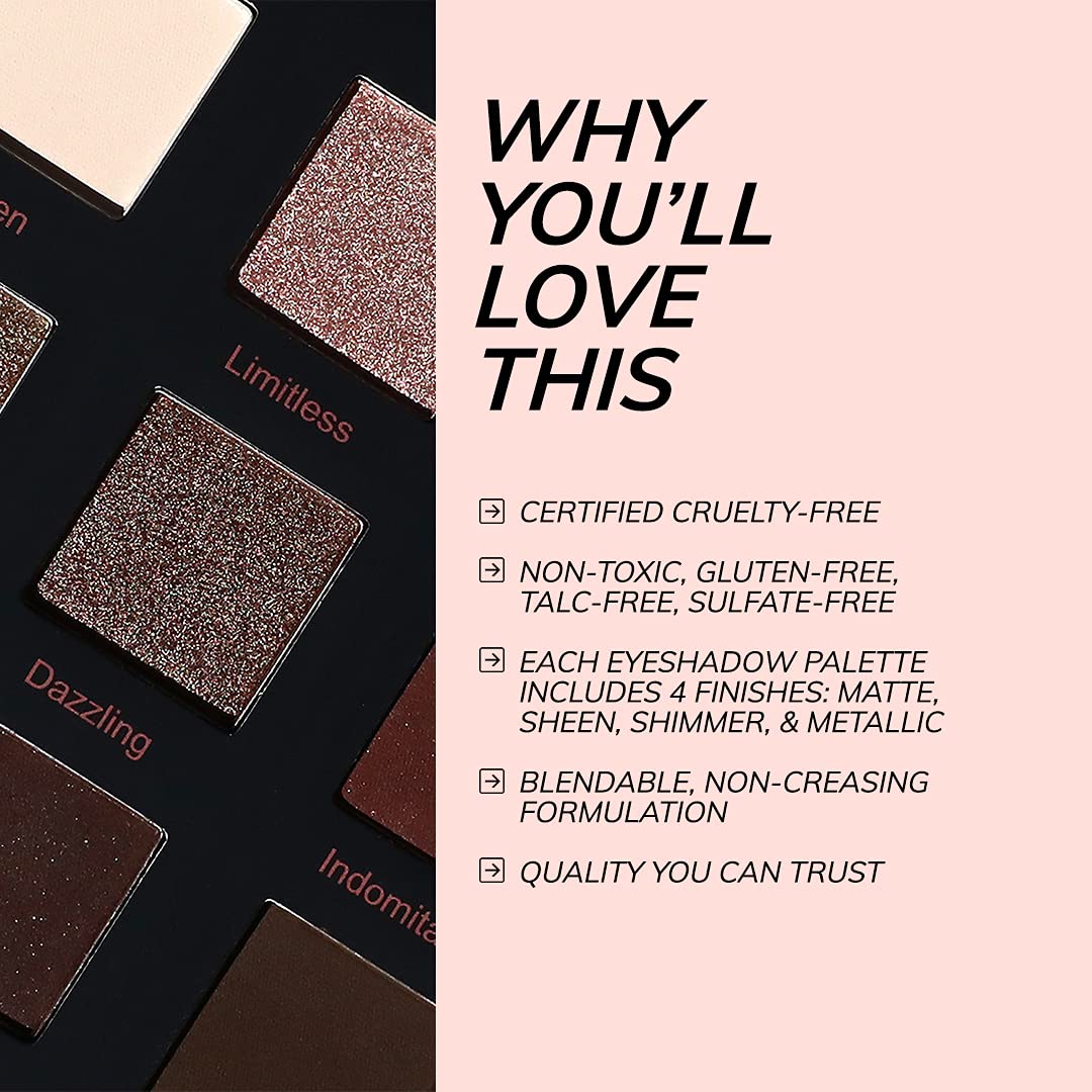 - DO YOUR SQUATS: Universal palette is great for the office, perfect for an evening out, or for your go-to day-off look. This collection offers deep burgundies, coppers, and subtle browns, flattering for every woman.