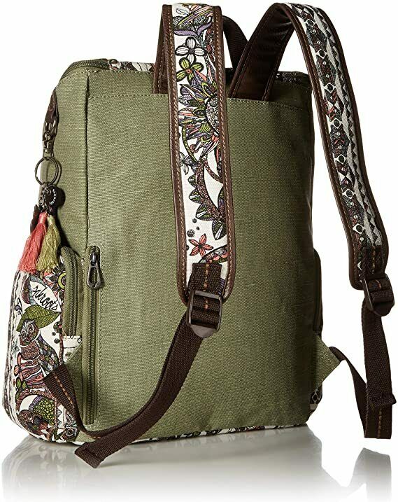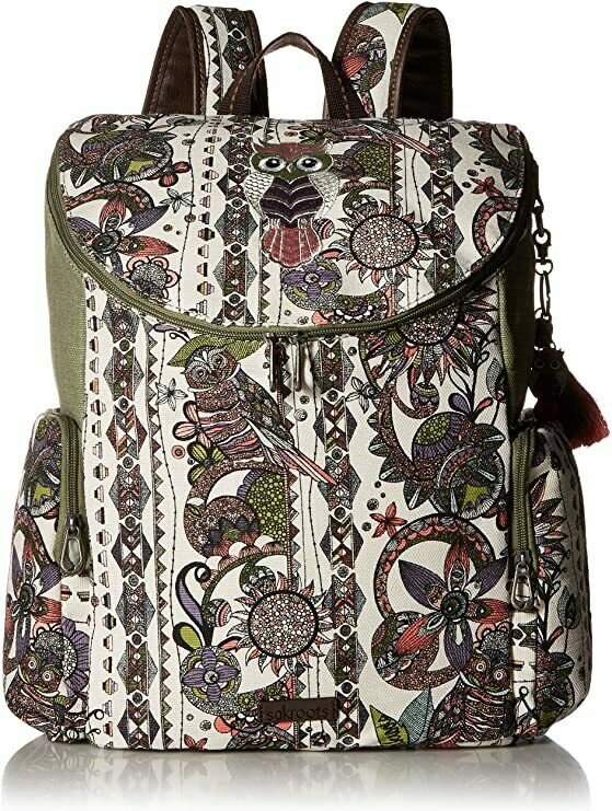 Complement your vacation look with the Sakroots Pacific Backpack. This quirky backpack features main zippered closure, side zippered pockets, and padded sleeve that fits a laptop. The adjustable backpack strap offers customized use, while the top handle makes it easy to carry. Main zippered closure Side zippered pockets Padded sleeve Adjustable backpack strap Top handle Critter keychain Signature branding detail Made from cotton canvas. Size: OSFA. Color: Pastel Spirit Desert.