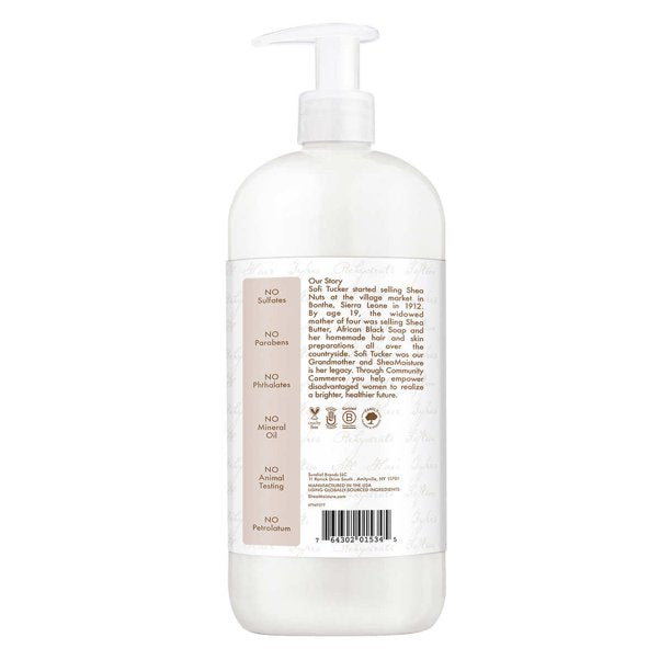 Description: Shea Moisture 100% Virgin Coconut Oil Daily Hydration Conditioner, 34.0 fl ozFeatures:Delivers Daily Hydration for Soft, Conditioned, Tangle Free HairGentle for All Hair TypesSulfate Free and Color SafeLeaves Hair Wrapped in a Light Coastal Coconut BreezeProduct DetailsSheaMoisture 100% Virgin Coconut Oil ConditionerFeatures and BenefitsNatural IngredientsFormulated with a nourishing blend of 100% Virgin Coconut and Shea Oils, creamy Coconut Milk and Acacia Senegal, this conditioner helps provide renewed hydration, manageability and shine. Leaves hair wrapped in a light coastal coconut breeze.CertificationsOur products are natural, sustainably-produced, and made with love for you and your body. We pioneer fair trade through Community Commerce at home, and abroad. We strive to be sulfate and paraben free, and more, whenever possible. We have tested our soaps on our family for generations, never on animals.100% Virgin Coconut OilHYDRATES: Deliver Intense Hydration To Revive Dry, Damaged HairSOFTENS: Softens Rough Curls & Coils & Makes Them ManageableDETANGLES: Ensure That Hair Stay Tangle FreeCONDITIONS: Helps Your Hair Retain Moisture And Stay Conditioned For LongerREDUCES FRIZZ: Seals Open Hair Cuticles To Keep Your Curls Free Of Frizz.