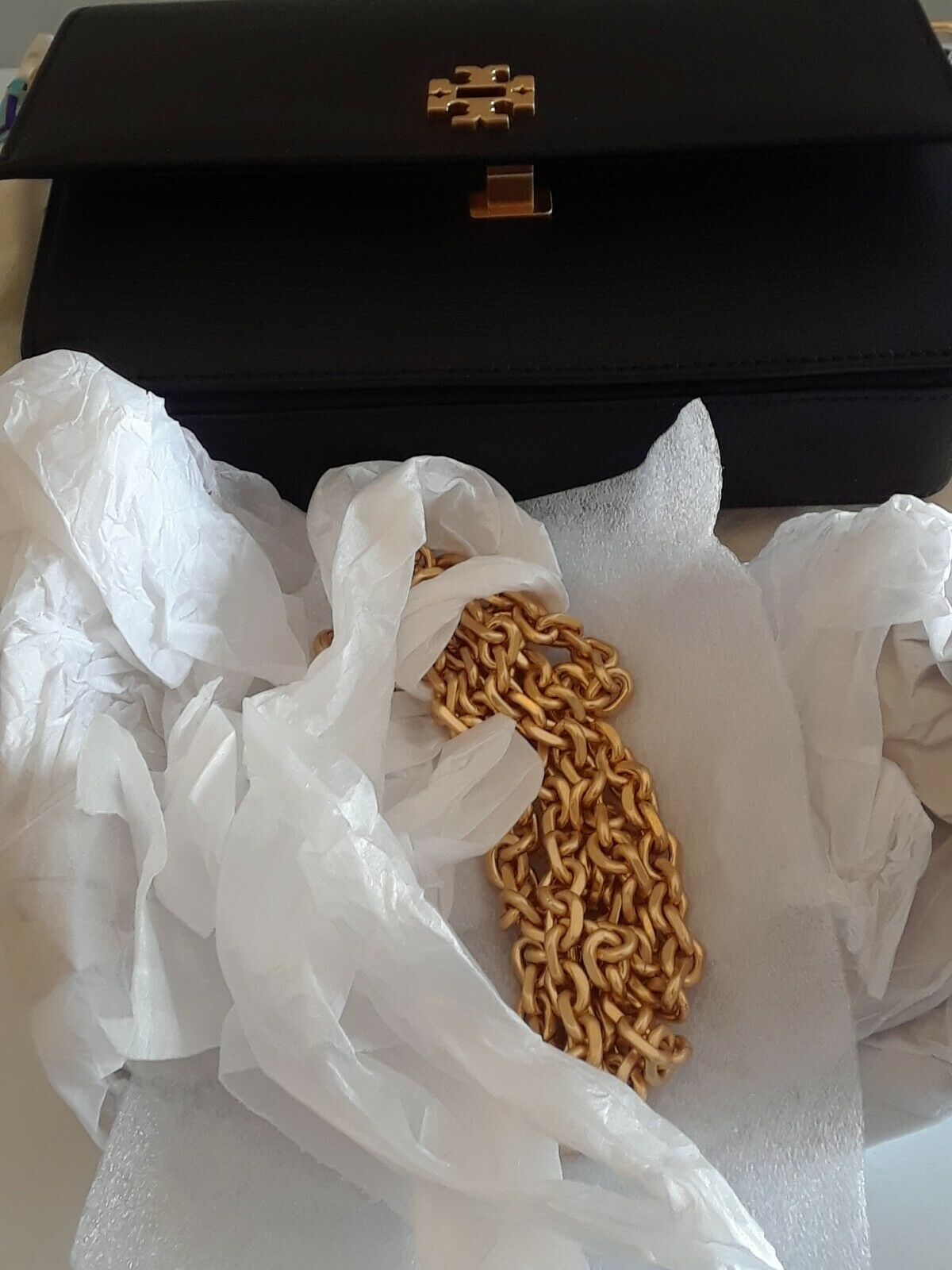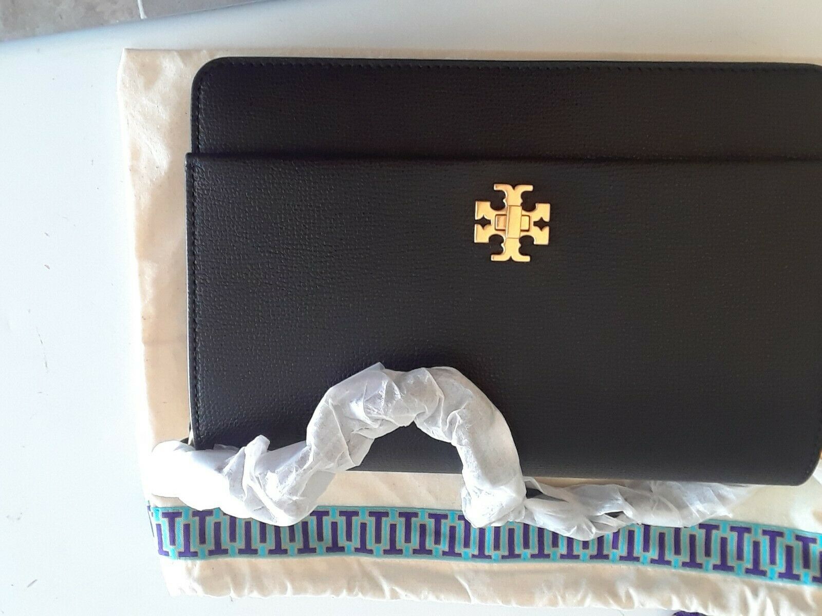 Tory Burch Kira Envelope Clutch, Black, Model: 45155. Condition is New without tags. See pictures for more detail.